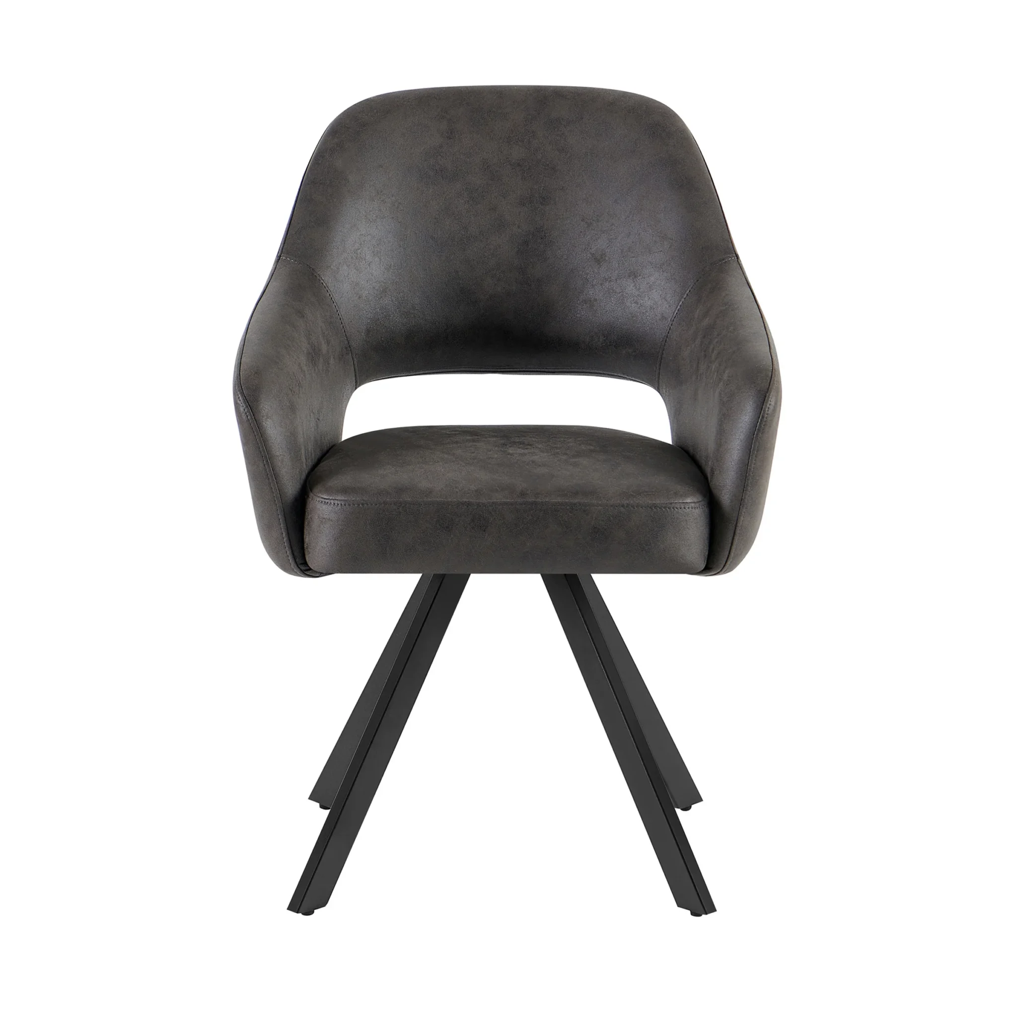 De Emilie is voorzien van zwarte metalen poten en een 180 graden draaifunctie met terugdraaisysteem, zodat de stoel altijd netjes terugdraait naar de oorspronkelijke stand.