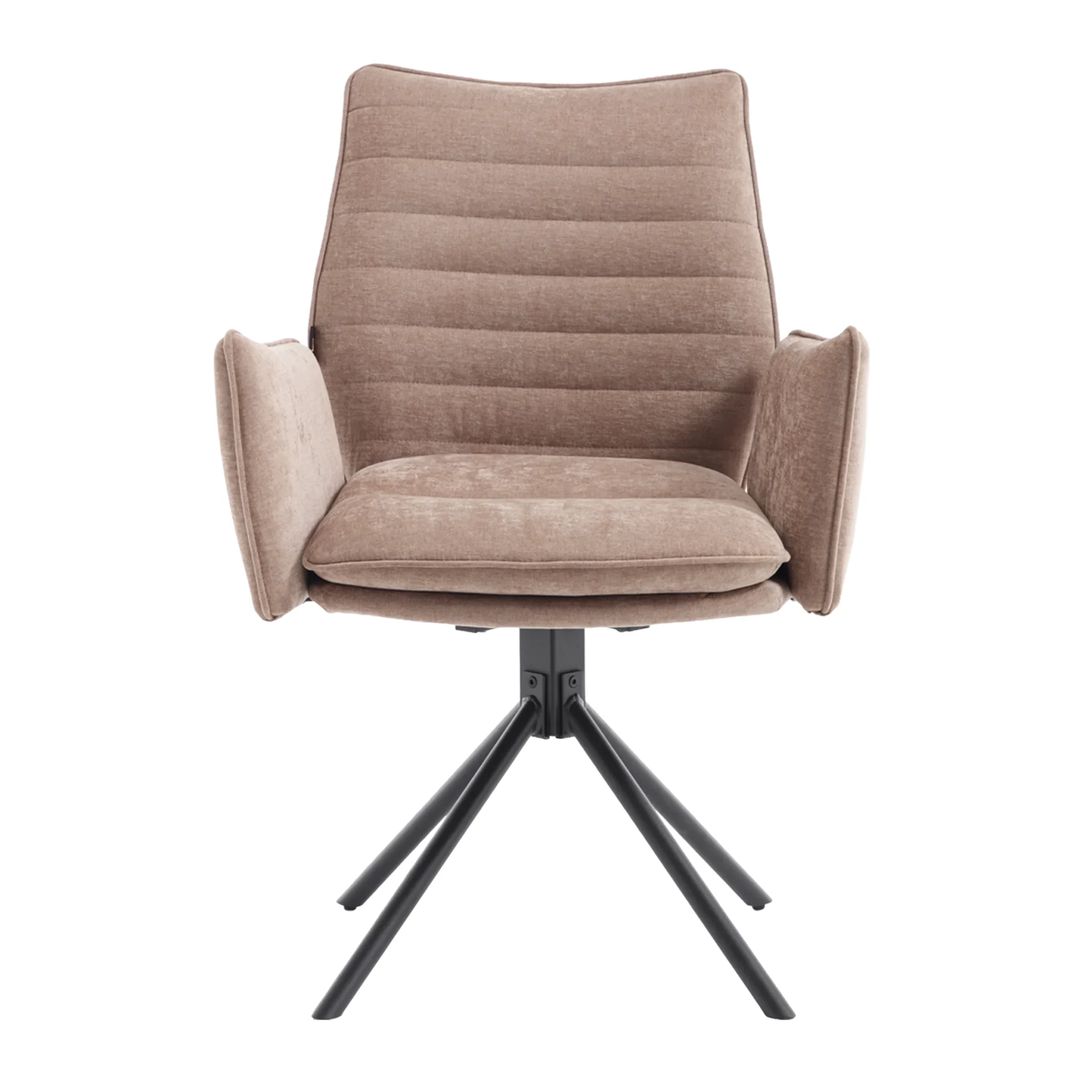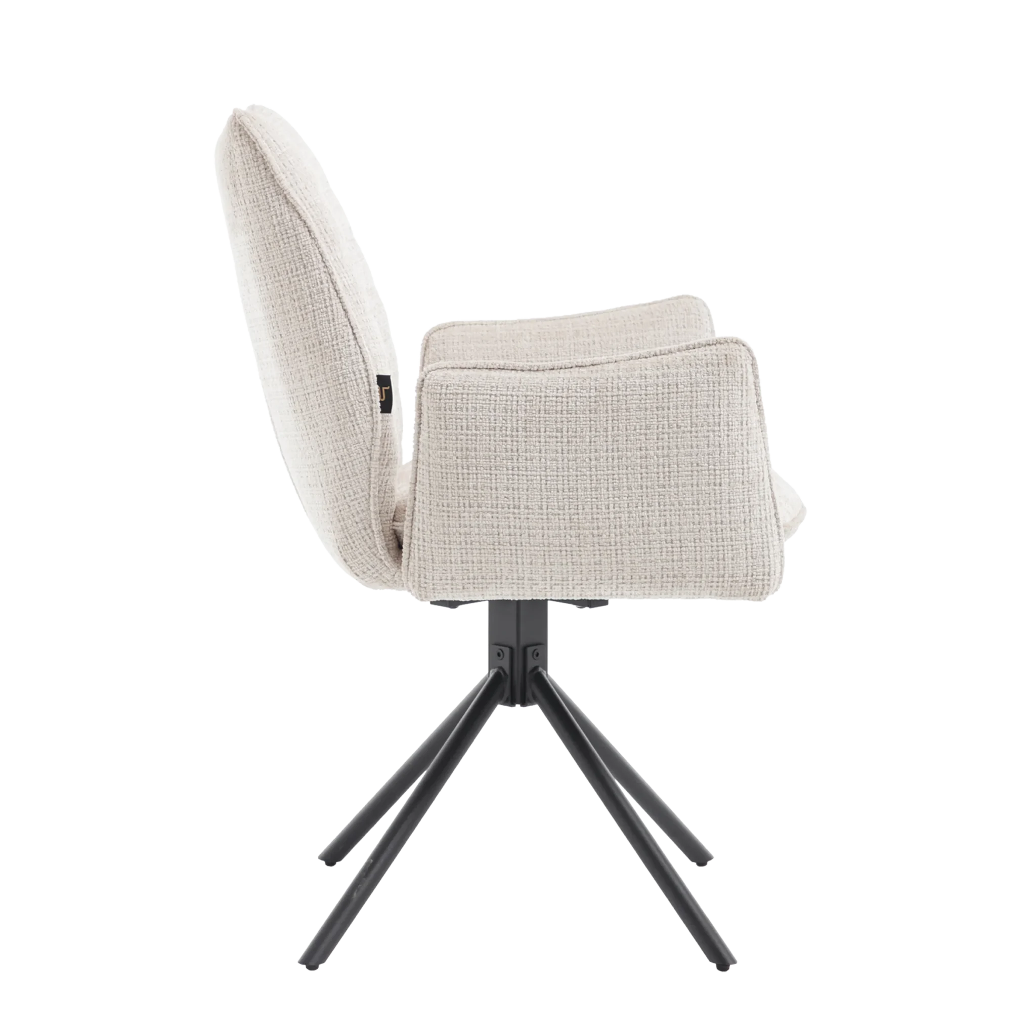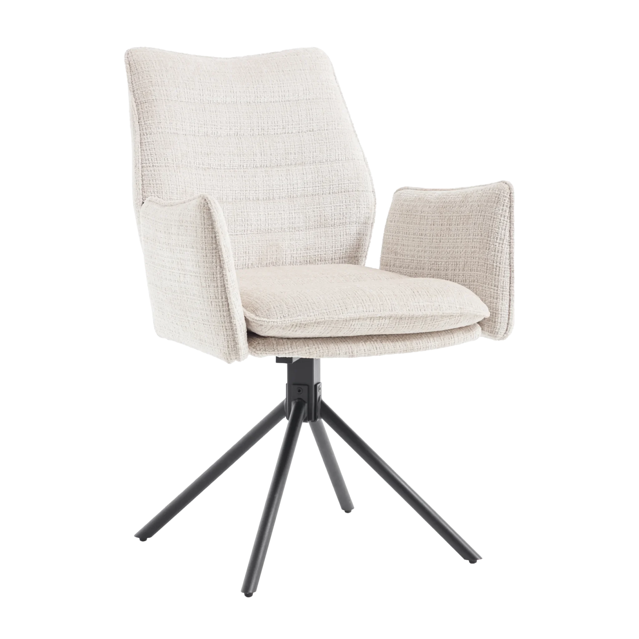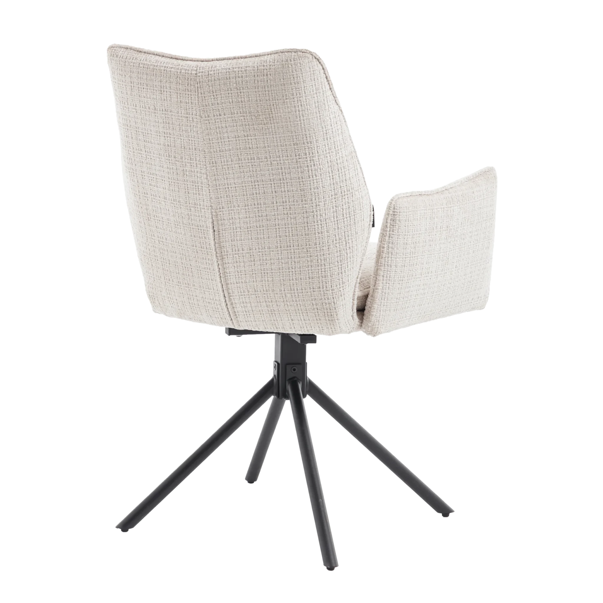 Tim is een elegante eetkamerstoel verkrijgbaar in twee luxe stoffen. De subtiele ruimte tussen rug en armleuningen zorgt voor een speels én stijlvol effect. Dankzij de 180° draaibare zitting met automatisch terugdraaisysteem draait de stoel altijd netjes terug zodra je opstaat. De stoel is verkrijgbaar in zes stijlvolle kleuren, zodat je eenvoudig een combinatie kiest die naadloos aansluit bij jouw interieur. Het stevige, gepoedercoate onderstel zorgt voor een moderne uitstraling en extra duurzaamheid.