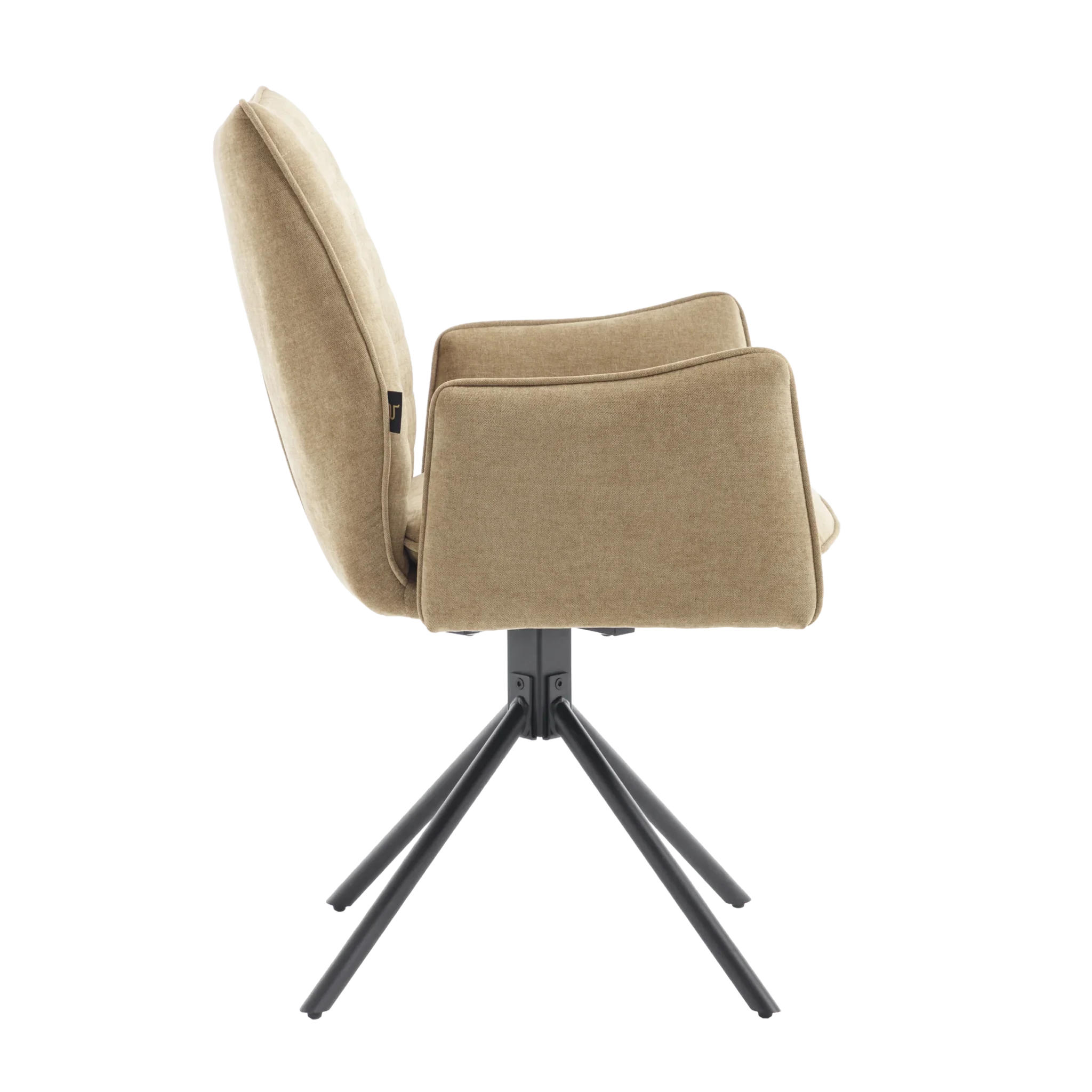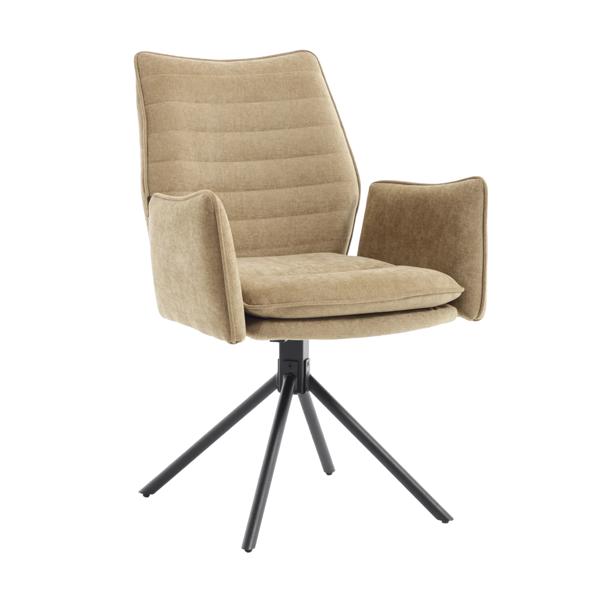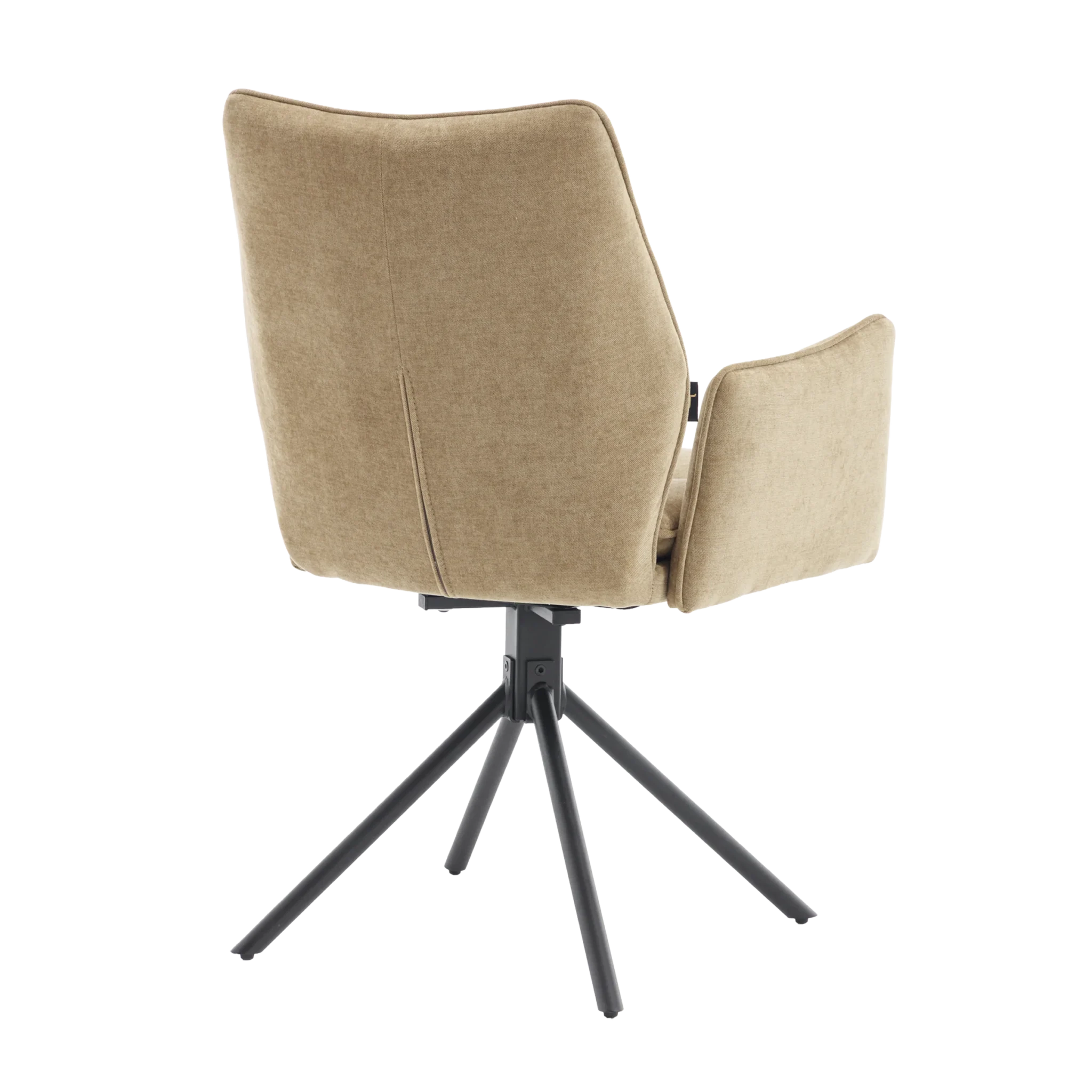 Tim is een elegante eetkamerstoel verkrijgbaar in twee luxe stoffen. De subtiele ruimte tussen rug en armleuningen zorgt voor een speels én stijlvol effect. Dankzij de 180° draaibare zitting met automatisch terugdraaisysteem draait de stoel altijd netjes terug zodra je opstaat. De stoel is verkrijgbaar in zes stijlvolle kleuren, zodat je eenvoudig een combinatie kiest die naadloos aansluit bij jouw interieur. Het stevige, gepoedercoate onderstel zorgt voor een moderne uitstraling en extra duurzaamheid.