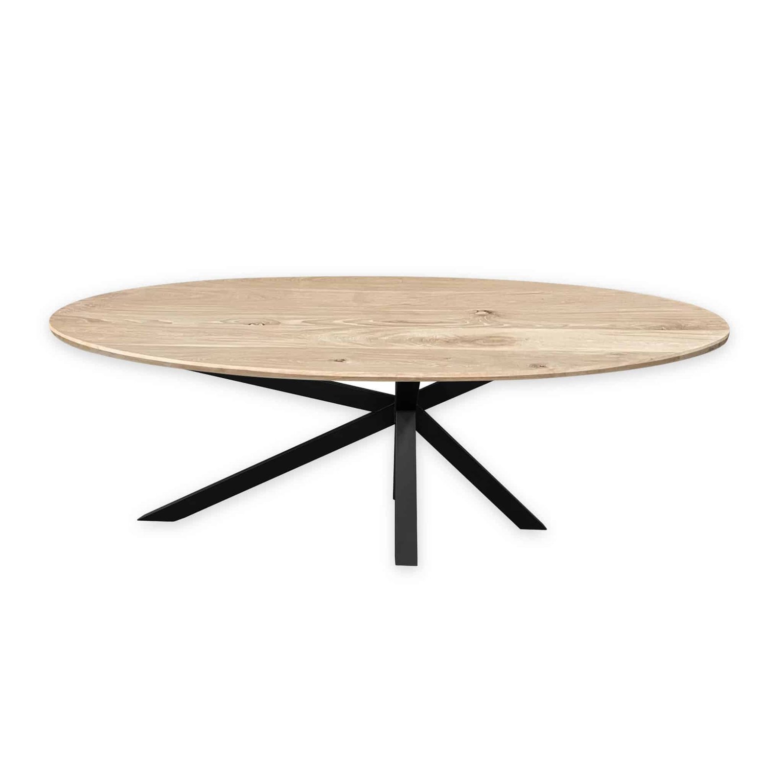 Eettafel massief eiken – Asymmetrisch onderstel – ovaal – verjongde rand