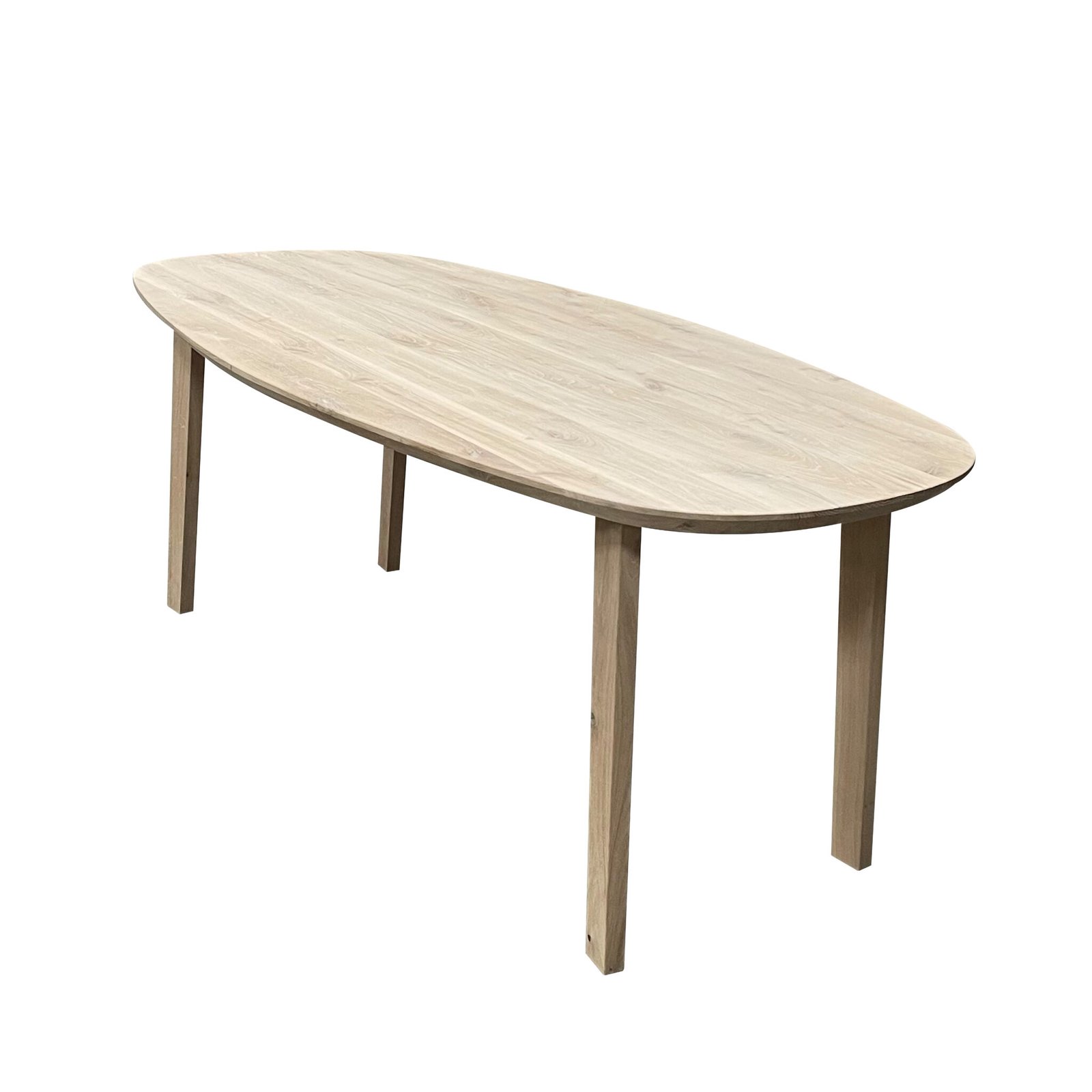 Eettafel massief eiken – vier schuinen poten – kiezel – verjongde rand